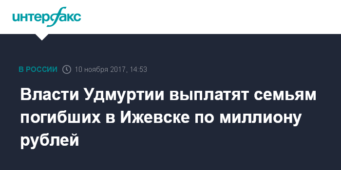 Власти Удмуртии выплатят семьям погибших в Ижевске по миллиону рублей