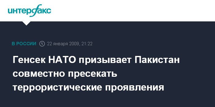 Генсек НАТО призывает Пакистан совместно пресекать террористические проявления