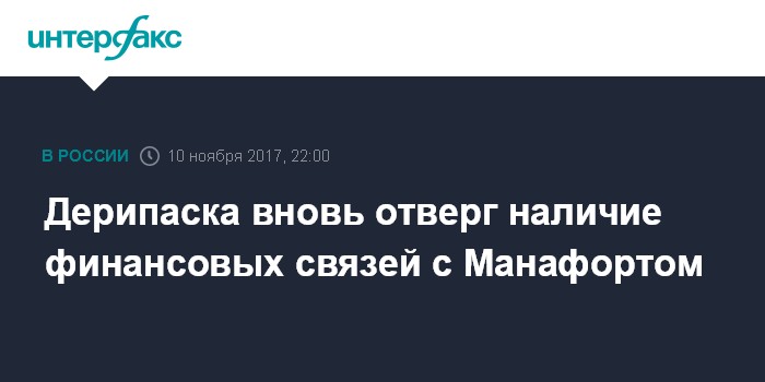 Москва. 10 ноября. INTERFAX.RU - Российский бизнесмен Олег Дерипаска назвал ложной информацию о предполагаемом наличии между ним и экс-главой предвыборного штаба нынешнего президента США Полом Манафортом финансовых связей, сообщает в пятницу телеканал CNN.