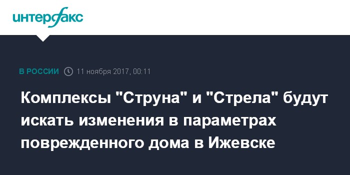 Комплексы "Струна" и "Стрела" будут искать изменения в параметрах поврежденного дома в Ижевске