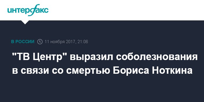 "Руководство и коллектив телеканала "ТВ Центр" выражают глубокие соболезнования семье Бориса Исаевича Ноткина в связи с его трагической кончиной", - говорится в сообщении телеканала, поступившем в "Интерфакс".