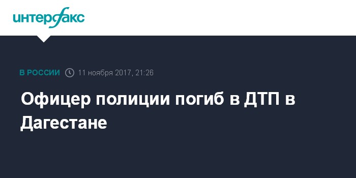 "Дорожно-транспортное происшествие случилось рано утром 11 ноября на федеральной автодороге "Кавказ" в Кумторкалинском районе Дагестана. По предварительным данным, погиб офицер полиции", - сказал собеседник агентства. По его словам, трагедия произошла из-за того, что водитель автомобиля не справился с управлением.
