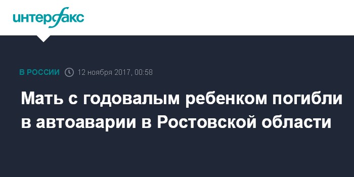 Москва. 12 ноября. INTERFAX.RU - Два человека, в том числе ребенок, погибли, один получил травмы в результате аварии в Родионово-Несветайском районе Ростовской области в субботу, сообщили "Интерфаксу" в отделе пропаганды Управления ГИБДД ГУ МВД России по региону.