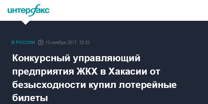 Конкурсный управляющий предприятия ЖКХ в Хакасии от безысходности купил лотерейные билеты