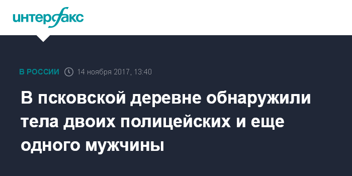 Москва. 14 ноября. INTERFAX.RU - Тела троих мужчин с признаками насильственной смерти обнаружены в одной из деревень Псковской области, двое из погибших - полицейские.