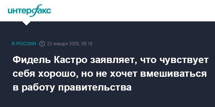 Фидель Кастро заявляет, что чувствует себя хорошо, но не хочет вмешиваться в работу правительства