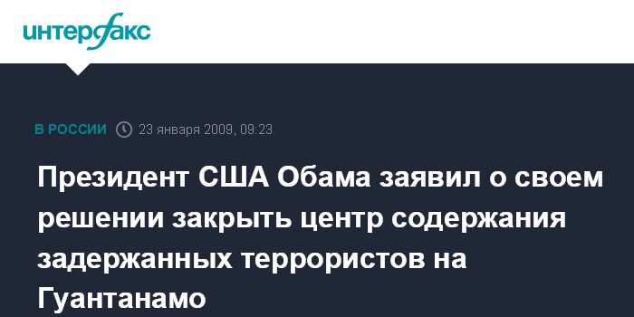 Москва. 23 января. INTERFAX.RU - Президент США Барак Обама заявил в четверг о намерении закрыть лагерь на военной базе Гуантанамо, где содержатся задержанные по обвинению в терроризме. Он выступил перед сотрудниками госдепартамента, излагая первоочередные задачи во внешней политике.