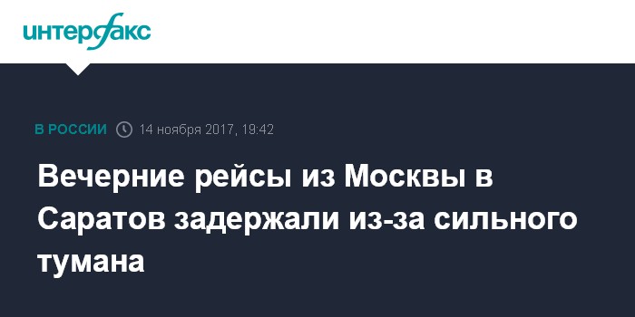 Вечерние рейсы из Москвы в Саратов задержали из-за сильного тумана