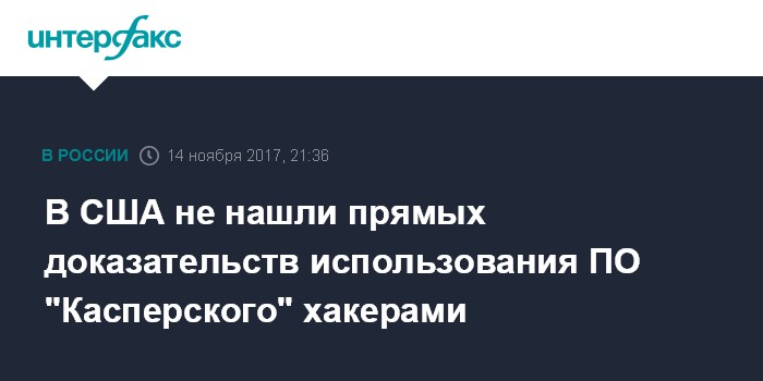 Москва. 14 ноября. INTERFAX.RU - Министерство внутренней безопасности США не имеет доказательств того, что программное обеспечение "Лаборатории Касперского" используется для взлома компьютерных систем в Америке, заявила представитель министерства Джанетт Манфра на слушаниях в комитете Палаты Представителей.