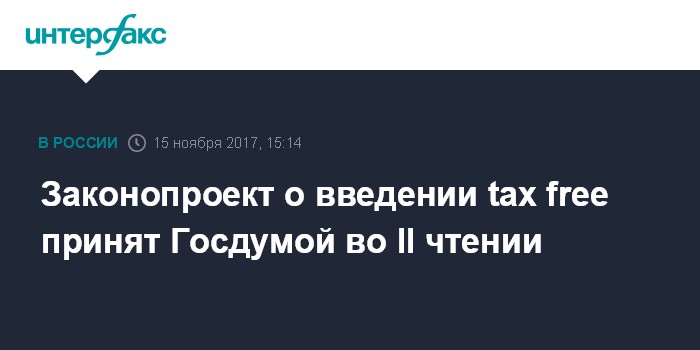 Москва. 15 ноября. INTERFAX.RU - Госдума РФ на заседании в среду приняла во втором чтении законопроект, который наделяет иностранных граждан правом на возврат НДС по покупкам, совершенным на территории России (tax free).