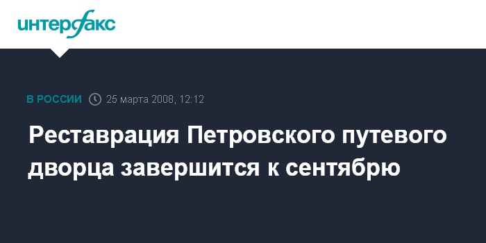 25 марта. INTERFAX.RU - Проведение реставрационных работ в Петровском путевом дворце планируется завершить до празднования Дня города в сентябре, заявил первый заместитель мэра в правительстве Москвы Владимир Ресин на заседании столичного правительства во вторник.
