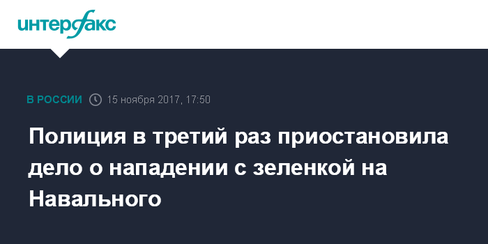 Полиция в третий раз приостановила дело о нападении с зеленкой на Навального