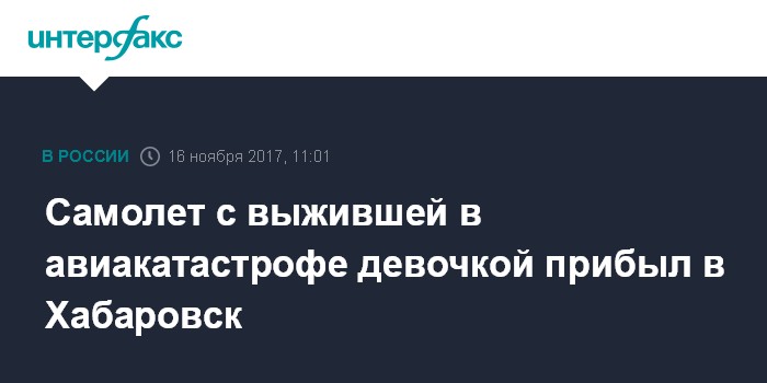 Самолет с выжившей в авиакатастрофе девочкой прибыл в Хабаровск