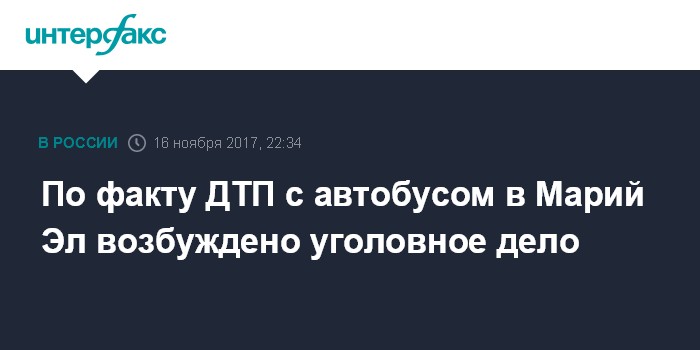 "По данным следствия, 16 ноября 2017 года около 17:30 примерно на 64 км автодороги "Йошкар-Ола - Козьмодемьянск" произошла автоавария с участием грузового автомобиля "КамАЗ" и пассажирского микроавтобуса Mercedes Sprinter. По предварительным сведениям, полученным на месте происшествия, водитель микроавтобуса выехал на обгон на полосу встречного движения, и, пытаясь уйти от столкновения с лесовозом, задел его по касательной, после чего микроавтобус съехал в кювет. В ДТП погибли 15 человек, в том числе один несовершеннолетний, 4 человека получили повреждения различной степени тяжести и доставлены в больницу", - отмечается в сообщении.