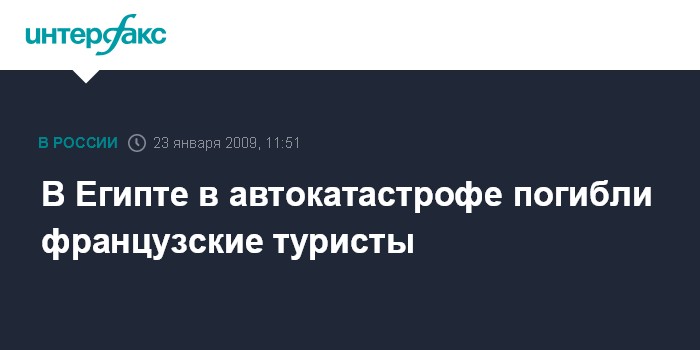 Москва. 23 января. INTERFAX.RU - Очередная автоавария, в которой погибли иностранные туристы, произошла в Египте в четверг днем на дороге, соединяющей Хургаду и Луксор, сообщило Каирское бюро агентства "Франс пресс".