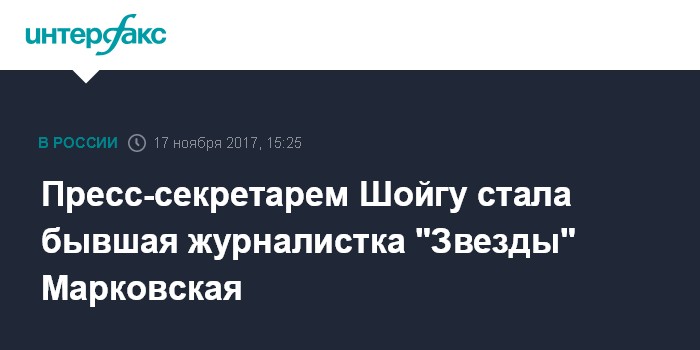 Пресс-секретарем Шойгу стала бывшая журналистка "Звезды" Марковская
