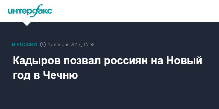 Москва. 17 ноября. INTERFAX.RU - Глава Чеченской республики Рамзан Кадыров призвал россиян провести новогодние каникулы на курортах республики и в других местах РФ, отметил, что отдыхать в России безопаснее, чем в Европе.