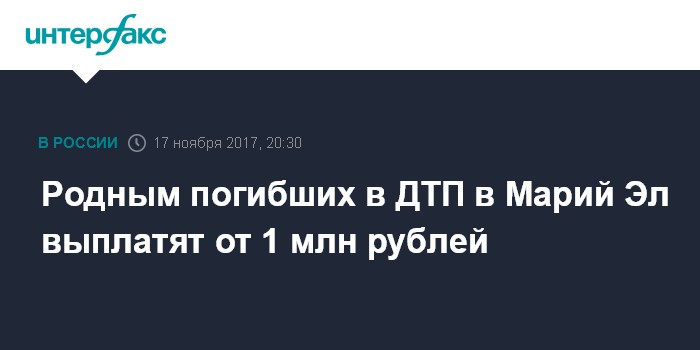 Москва. 17 ноября. INTERFAX.RU - Родным погибших в ДТП с лесовозом в Марий Эл выплатят от миллиона рублей.