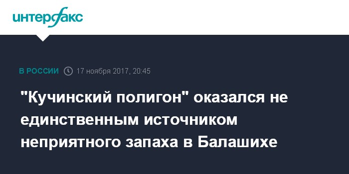 Москва. 17 ноября. INTERFAX.RU - "Кучинский полигон" является одним из основных источников неприятного запаха в Балашихе, Люберцах и Реутове, вместе с тем к загрязнению воздуха могут быть также причастны 14 организаций, осуществляющих деятельность на территории или вблизи этих городов.