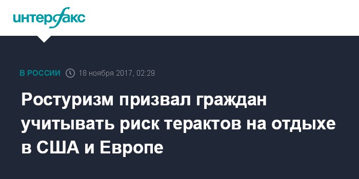 "Федеральное агентство по туризму призывает туроператоров, реализующих туры в страны Европы и США, информировать своих клиентов о возможном наличии угрозы. Ростуризм призывает туристов, планирующих в новогодние праздники отдых в вышеобозначенных странах, учитывать риски при поездках", - говорится в сообщении, опубликованном на сайте ведомства.
