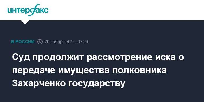 Суд продолжит рассмотрение иска о передаче имущества полковника Захарченко государству