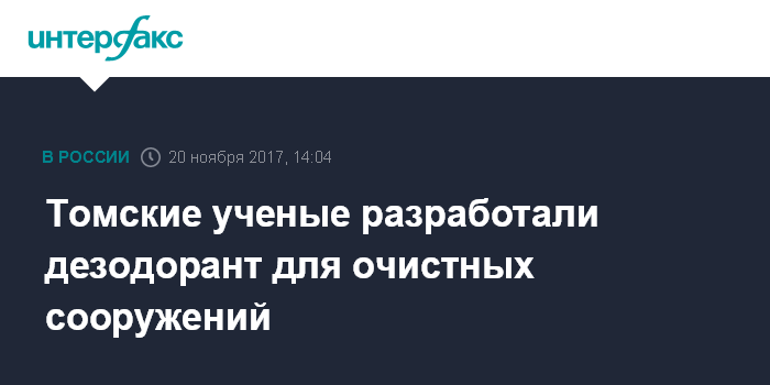 Москва. 20 ноября. INTERFAX.RU - Ученые Инжинирингового химико-технологического центра Томского государственного университета (ИХТЦ ТГУ) разработали и опробовали нейтрализатор запаха для очистных сооружений. Об этом сообщил агентству "Интерфакс" директор центра Алексей Князев.