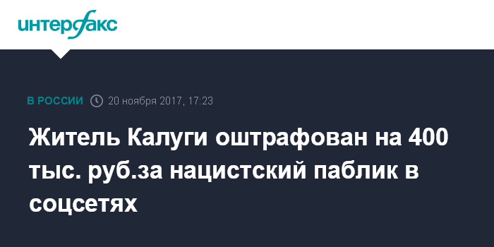 Житель Калуги оштрафован на 400 тыс. руб.за нацистский паблик в соцсетях