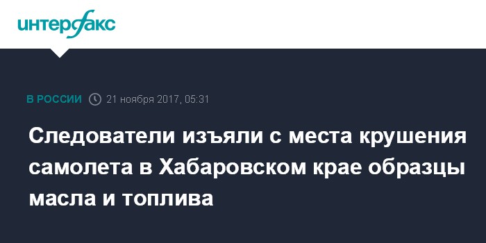 Москва. 21 ноября. INTERFAX.RU - Следователи совместно с экспертами Межгосударственного авиационного комитета (МАК) изъяли ряд предметов с места крушения пассажирского самолета L-410 у хабаровского поселка Нелькан, а также назначили экспертизы, сообщило во вторник Дальневосточное Следственное управление на транспорте СК РФ.