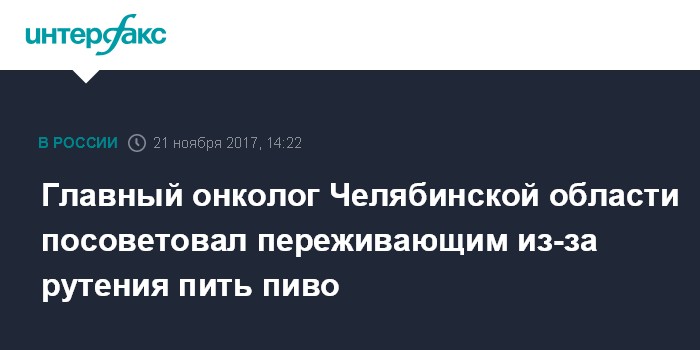 Главный онколог Челябинской области посоветовал переживающим из-за рутения пить пиво