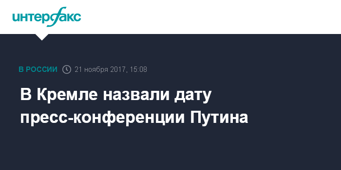 Москва. 21 ноября. INTERFAX.RU - Пресс-конференция президента России Владимира Путин пройдет 14 декабря, объявлена аккредитация журналистов, сообщили во вторник в пресс-службе Кремля.