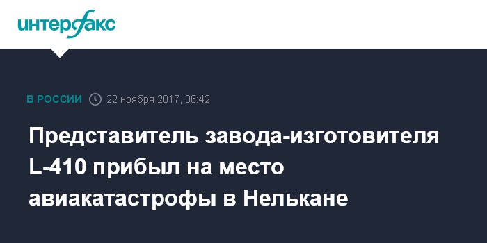 Как сообщалось, представитель чешского завода-изготовителя самолетов L-410 намерен принять участие в расследовании причин падения такого самолета у Нелькана. На место авиакатастрофа также отправились специалисты от МАК и Минтранспорта Хабаровского края.
