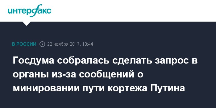 Госдума собралась сделать запрос в органы из-за сообщений о минировании пути кортежа Путина