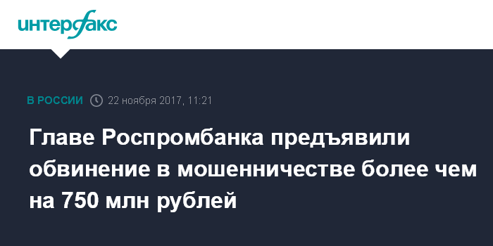 Главе Роспромбанка предъявили обвинение в мошенничестве более чем на 750 млн рублей