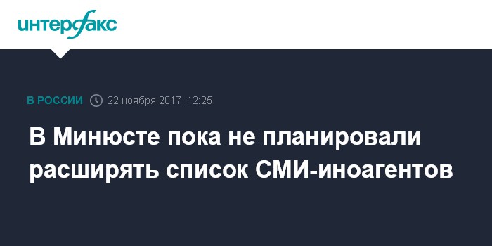Москва. 22 ноября. INTERFAX.RU - Расширение списка СМИ-иноагентов пока не планируется, заявил первый замглавы Минюста РФ Олег Плохой.