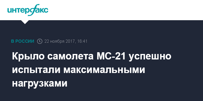 В апреле 2016 года сообщалось, что композитное крыло МС-21 разрушилось во время статических испытаний под нагрузкой чуть менее ста процентов от предельной расчетной. Конструктор крыла МС-21 изначально пошел по пути уменьшения его массы, что и привело к поломке конструкции во время испытаний, отмечает N+1.