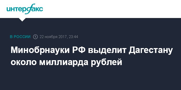 Минобрнауки РФ выделит Дагестану около миллиарда рублей