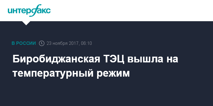Москва. 23 ноября. INTERFAX.RU - Биробиджанская ТЭЦ, на которой ранее вышел из строя 10-й котел, утром 23 ноября вышла на температурный режим, сообщила пресс-служба АО "Дальневосточная генерирующая компания" (ДГК, входит в группу "РусГидро").