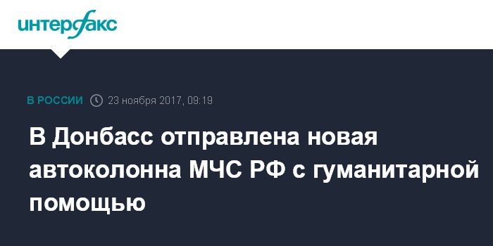 Москва. 23 ноября. INTERFAX.RU - Автомобильная колонна МЧС России с гуманитарной помощью в 71-й раз отправилась в Донбасс, сообщили в пресс-службе министерства.