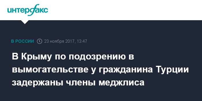 Между тем, осведомленный источник сообщил "Интерфаксу", что в Симферополе задержали руководителя ялтинского отделения меджлиса крымских татар. "В частности, задержан руководитель ялтинского меджлиса. Речь идет о вымогательстве нескольких тысяч долларов", - сказал он.
