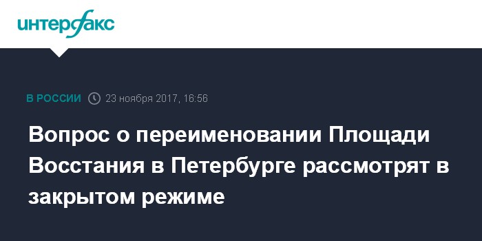 Москва. 23 ноября. INTERFAX.RU - Топонимическая комиссия Санкт-Петербурга рассмотрит в закрытом режиме вопрос о возвращении исторических названий Советским улицам и Площади Восстания.