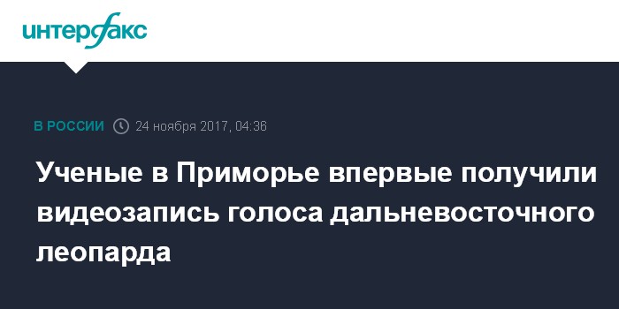 Москва. 24 ноября. INTERFAX.RU - Уникальные видеокадры с записью голоса краснокнижного дальневосточного леопарда впервые получили ученые в Приморском крае.