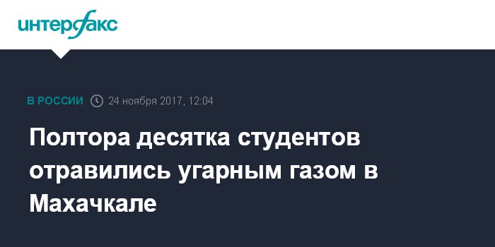Москва. 24 ноября. INTERFAX.RU - Одиннадцать студентов Исламского университета Махачкалы госпитализированы с признаками отравления угарным газом, еще пятеро пострадавших в госпитализации не нуждались, сообщила агентству "Интерфакс" представитель республиканского Минздрава Залина Муртазалиева.