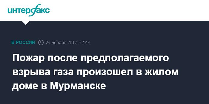 Пожар после предполагаемого взрыва газа произошел в жилом доме в Мурманске