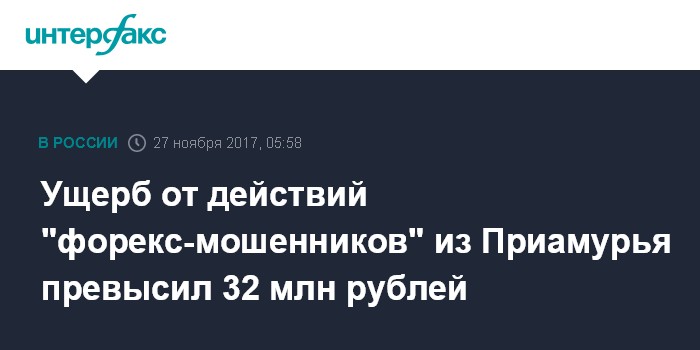 Москва. 27 ноября. INTERFAX.RU - Около 360 человек из разных городов России пострадали от действий так называемой группы "форекс-мошенников" из Амурской области, а сумма ущерба превысила 32 млн рублей.