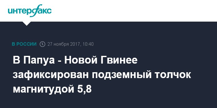 В Папуа - Новой Гвинее зафиксирован подземный толчок магнитудой 5,8