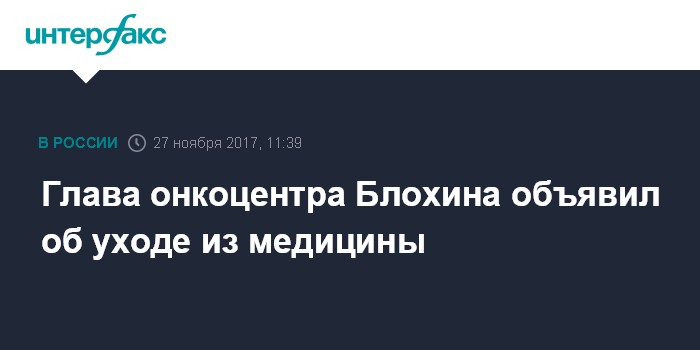 Москва. 27 ноября. INTERFAX.RU - Глава онкоцентра имени Блохина Михаил Давыдов заявил, что в связи с истечением контракта покидает свой пост, а также уходит из профессии, сообщили "Интерфаксу" в пресс-службе медучреждения в понедельник.