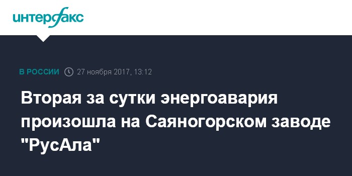 Аварии на энергосетях, которые приводили к сбросу нагрузки на хакасских заводах "РусАла", в этом году случались 29 мая, 27 июня, 11 сентября, 23 и 24 октября, а также утром 27 ноября. Ростехнадзор по результатам расследования причин аварии 29 мая предписал Саяногорскому и Хакасскому (ХАЗ) алюминиевым заводам "РусАла" реконструировать системы энергоснабжения. В настоящее время схема энергоснабжения САЗа и ХАЗа выполнена без резервирования, сообщалось в материалах "Системного оператора ЕЭС", в связи с чем высока вероятность отключения порядка 1,5 ГВт нагрузки и разбалансировки мощности в ОЭС Сибири.