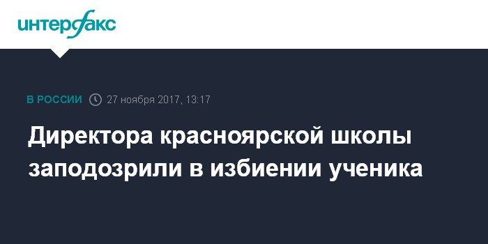 Москва. 27 ноября. INTERFAX.RU - Уголовное дело возбуждено в отношении директора Тинской средней школы в Нижнеингашском районе Красноярского края, который подозревается в избиении школьника. Об этом сообщает пресс-служба главного следственного управления СКР по краю в понедельник.