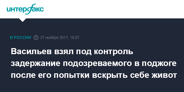 Васильев взял под контроль задержание подозреваемого в поджоге после его попытки вскрыть себе живот