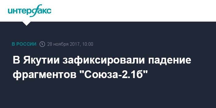 Москва. 28 ноября. INTERFAX.RU - Группы наблюдения в Алданском и Вилюйском районах Якутии зафиксировали падение створок головного обтекателя и частей центрального блока ракеты-носителя "Союз-2.1б", запущенной с космодрома "Восточный".